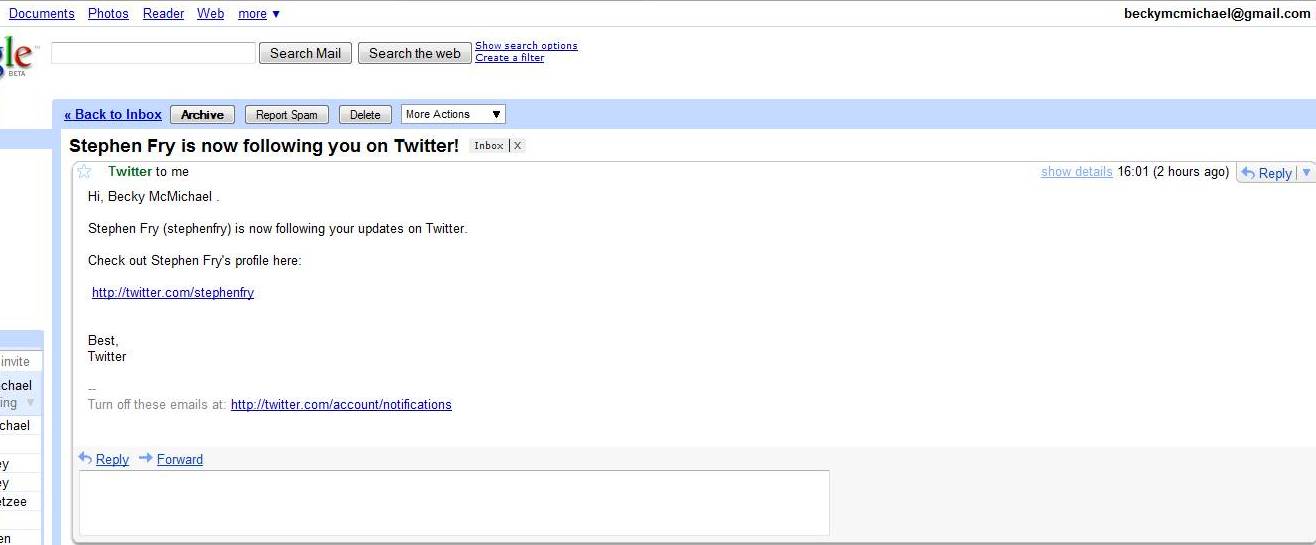 Looking forward to following Stephen Fry as I am a huge fan. Hope he doesn’t get too overwhelmed with the service although judging by the number of followers he has, it is going to be tough not to.