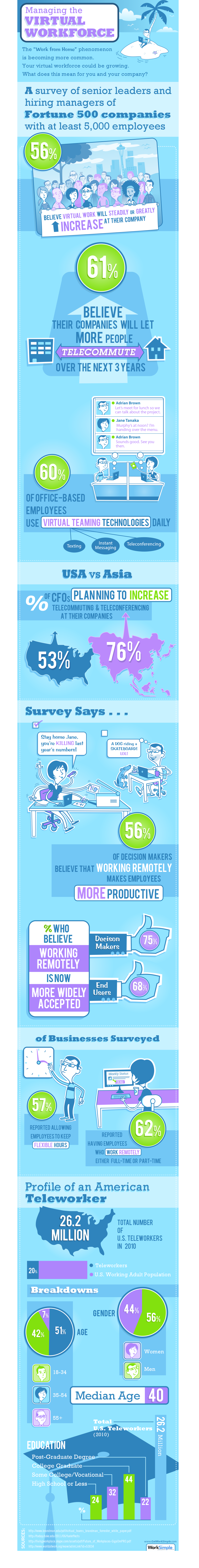 According to GetWorkSimple, the majority of employers now accept that teleworkers are more productive than their office based colleagues. With rising costs of travel and increased focus on the bottom line, many companies too are adopting a much more progressive approach to working policies as way to increase productivity and reduce office related costs.